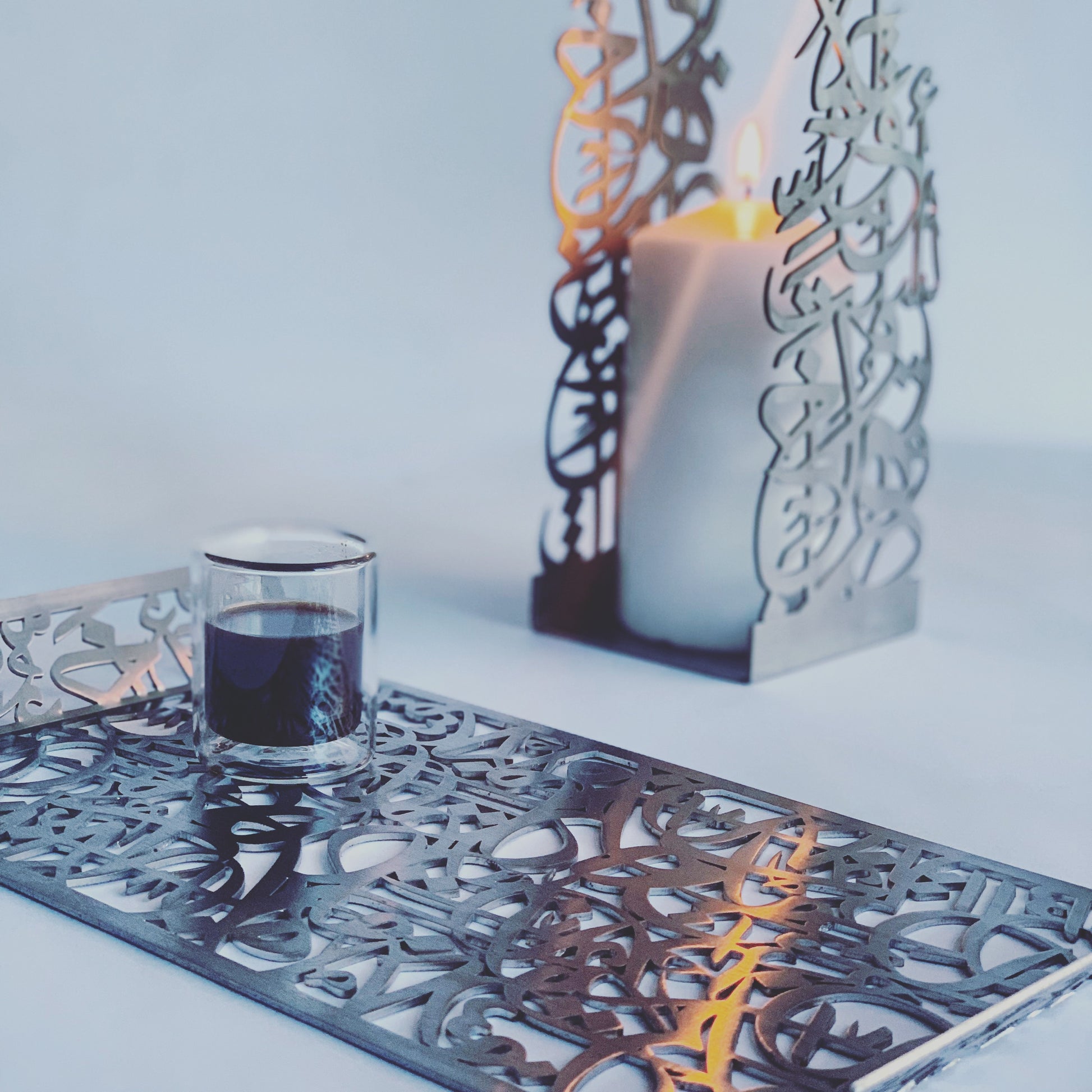 Opt for elegance with our calligraphy stainless steel tray. A glamorous addition to your home or an excellent gift.