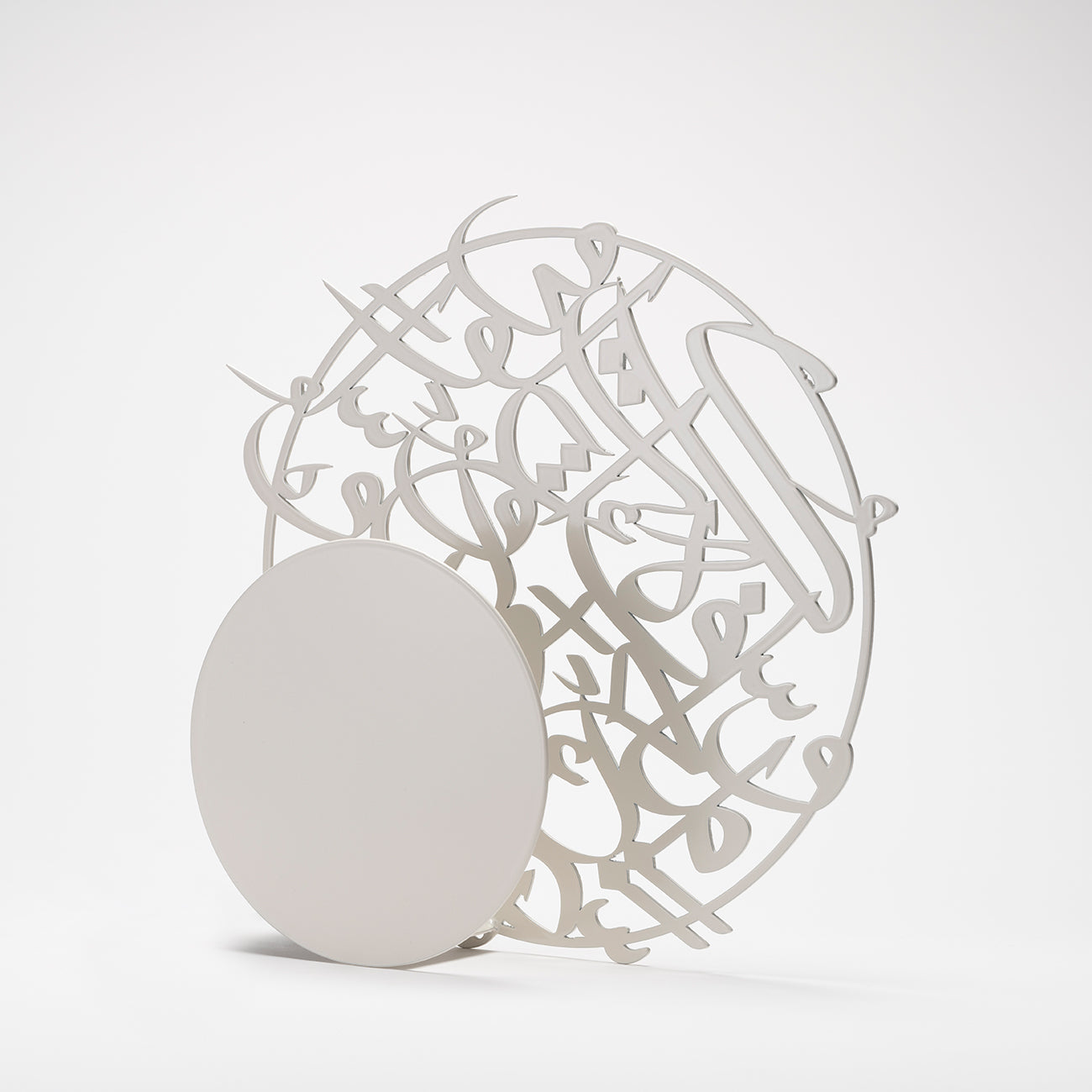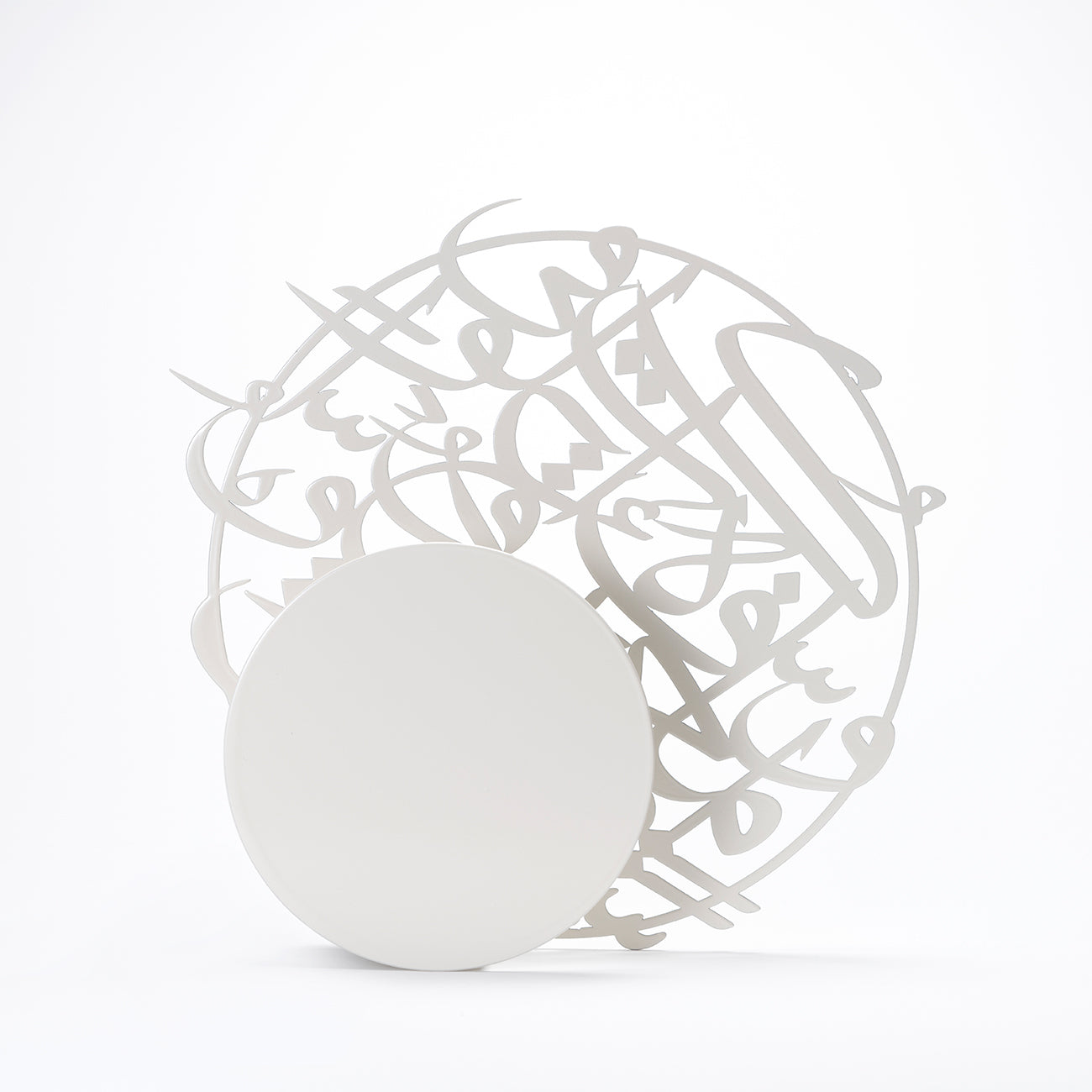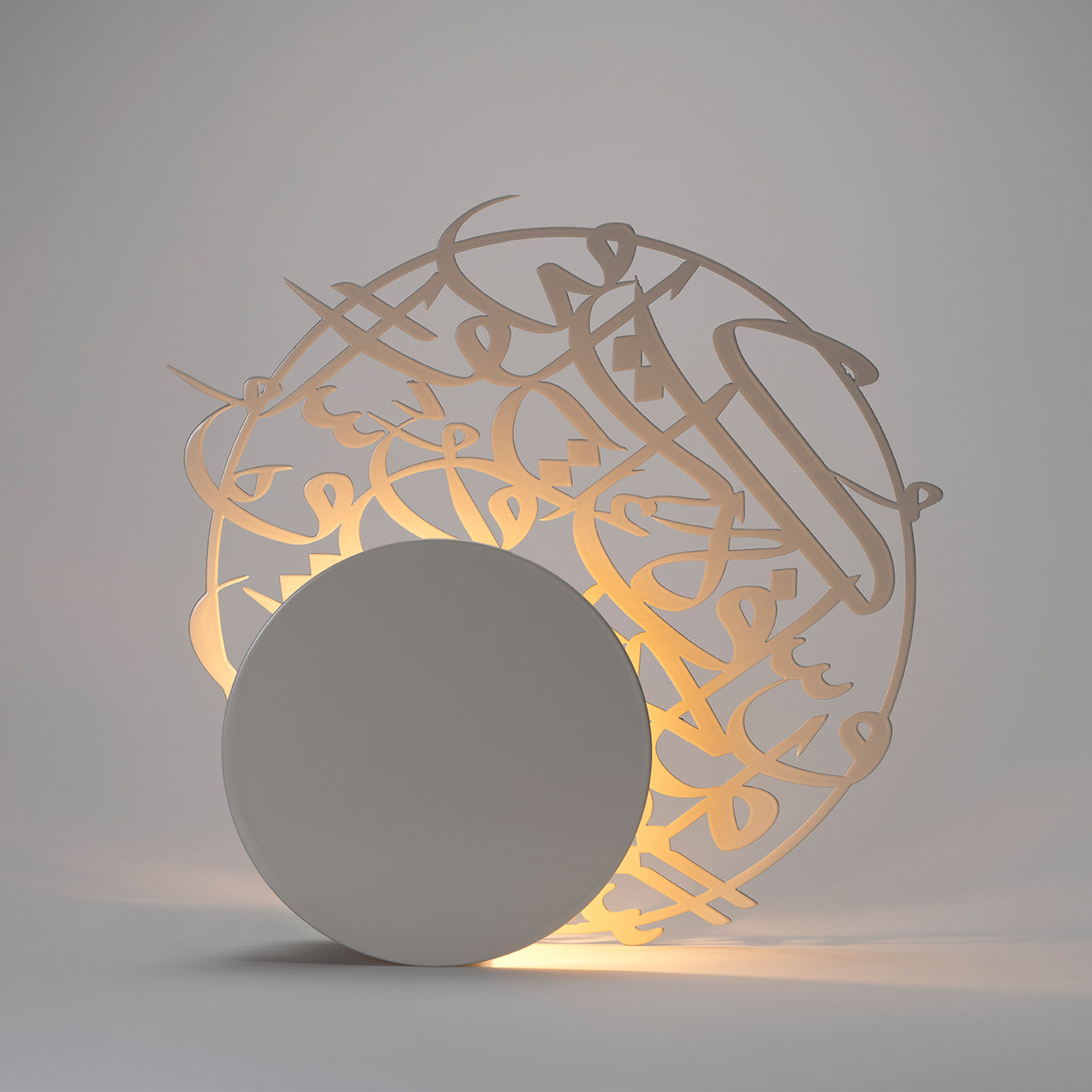 Our clipse Table Lamp looks just as good off as it does on, with sharp cuts of calligraphy that's integrated within a plain metal circle giving it the depth and illusion of an Eclipse. Treating any living space with a touch of an artist Middle Eastern Eclipse. A selection of Color shade are available to suit the mood of your space or you.
